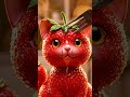 🍓🐱 The cutest sitting strawberry cat you’ll ever see — a full-body fluffy kitten sculpted entirely from glossy ripe strawberries, with perfect leaf “ears”, big sparkling amber eyes, pink nose and fluffy tail!S
